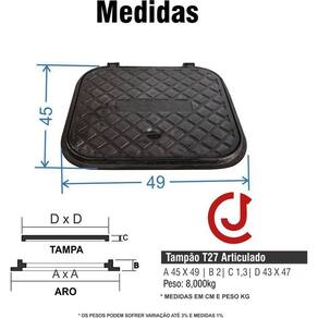 Características técnicas: projetado para tampar, caixas de passagem de tubulação, esgoto, águas pluviais, água potável, redes de telecomunicações, eletricidade entre outros. Facilitando o acesso a válvulas, registros, quadro de distribuição.