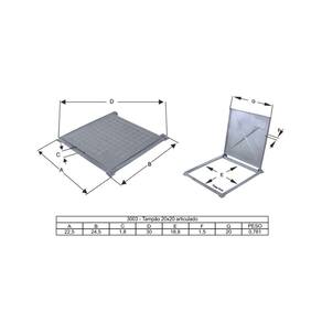 Projetado para tampar caixas de passagem de tubulação, esgoto, águas pluviais, água potável, redes de telecomunicações, eletricidade entre outros. Facilitando o acesso a válvulas, registros e quadro de distribuição. Sua articulação dificulta o roubo da tampa.