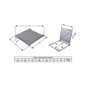 Tampa Tampão Chão de Alumínio Quadrado Articulado 25x25cm