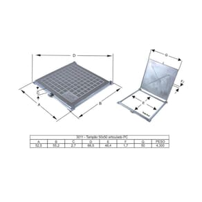 Projetado para tampar caixas de passagem de tubulação, esgoto, águas pluviais, água potável, redes de telecomunicações, eletricidade entre outros. Facilitando o acesso a válvulas, registros e quadro de distribuição, sua articulação dificulta o furto da tampa que possui um sistema porta cadeado que restringi o acesso a pessoas não autorizadas.
