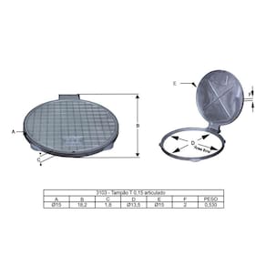 Projetado para tampar caixas de passagem de tubulação, esgoto, águas pluviais, água potável, redes de telecomunicações, eletricidade entre outros. Destacando-se para uso em fossas sépticas tampando o sumidouro, no qual a área livre do produto é adequada para as mangueiras de sucção dos caminhões (limpa fossa) que retiram os resíduos. Sua articulação dificulta o furto da tampa.