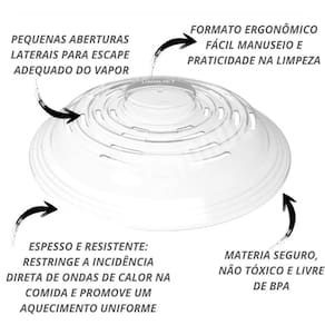Tampa transparente para micro-ondas Tampa de micro-ondas transparente Você já percebeu a confusão que um micro-ondas sujo pode causar Resíduos e respingos de alimentos se acumulam, tornando a limpeza uma tarefa cansativa e demorada. Sem a proteção adequada, seus pratos favoritos podem perder sabor e aroma, além de haver o risco de danificar o aparelho. A tampa de micro-ondas transparente é a solução ideal para evitar esses problemas com ela, você protege seu micro-ondas da sujeira, preserva os sabores dos alimentos e ainda facilita o aquecimento. Seu design prático e compacto permite que você a armazene facilmente, até mesmo dentro do micro-ondas, mantendo sua cozinha sempre organizada. Benefícios - protege o micro-ondas de sujeira e respingos - preserva o sabor e a umidade dos alimentos - material de alta resistência e fácil armazenamento Especificações técnicas - material: plástico - dimensões: larg.: 26cm x alt.: 5cm - peso: aproximadamente 57g - cor: transparente Conteúdo da embalagem - 01 tampa de micro-ondas transparente Não deixe a sujeira atrapalhar sua rotina adquira agora a tampa de micro-ondas e mantenha sua cozinha sempre limpa e prática Informações importantes sobre a compra - com de fábrica Dúvidas frequentes: 2 - em quanto tempo meu pedido será enviado 3 - é seguro fazer esta compra Resposta: desde a fundação da nossa empresa, temos milhares de clientes satisfeitos em outras lojas online. Somos uma loja oficial neste marketplace. Além das garantias da plataforma, oferecemos de fábrica. 4 - os produtos têm Resposta: sim, oferecemos de 30 dias em todos os nossos produtos. Se houver qualquer problema, resolveremos da melhor forma possível. 5 - esta compra é segura Resposta: sim, garantimos total segurança na sua compra e sigilo dos seus dados. 6 - e se eu não gostar do produto, terei meu dinheiro de volta Resposta: de acordo com o cdc código de defesa do consumidor , todo cliente de compras online tem até 7 dias para devolver o produto em caso de arrependimento, sem custo na devolução. Você será reembolsado em 100% do valor da compra. Caso tenha alguma dúvida, envie-nos uma mensagem e responderemos o mais rápido possível.