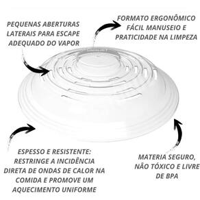 Tampa transparente para micro-ondas Tampa de micro-ondas transparente Você já percebeu a confusão que um micro-ondas sujo pode causar Resíduos e respingos de alimentos se acumulam, tornando a limpeza uma tarefa cansativa e demorada. Sem a proteção adequada, seus pratos favoritos podem perder sabor e aroma, além de haver o risco de danificar o aparelho. A tampa de micro-ondas transparente é a solução ideal para evitar esses problemas com ela, você protege seu micro-ondas da sujeira, preserva os sabores dos alimentos e ainda facilita o aquecimento. Seu design prático e compacto permite que você a armazene facilmente, até mesmo dentro do micro-ondas, mantendo sua cozinha sempre organizada. Benefícios - protege o micro-ondas de sujeira e respingos - preserva o sabor e a umidade dos alimentos - material de alta resistência e fácil armazenamento Especificações técnicas - material: plástico - dimensões: larg.: 26cm x alt.: 5cm - peso: aproximadamente 57g - cor: transparente Conteúdo da embalagem - 01 tampa de micro-ondas transparente Não deixe a sujeira atrapalhar sua rotina adquira agora a tampa de micro-ondas e mantenha sua cozinha sempre limpa e prática Informações importantes sobre a compra - com de fábrica Dúvidas frequentes: 2 - em quanto tempo meu pedido será enviado 3 - é seguro fazer esta compra Resposta: desde a fundação da nossa empresa, temos milhares de clientes satisfeitos em outras lojas online. Somos uma loja oficial neste marketplace. Além das garantias da plataforma, oferecemos de fábrica. 4 - os produtos têm Resposta: sim, oferecemos de 30 dias em todos os nossos produtos. Se houver qualquer problema, resolveremos da melhor forma possível. 5 - esta compra é segura Resposta: sim, garantimos total segurança na sua compra e sigilo dos seus dados. 6 - e se eu não gostar do produto, terei meu dinheiro de volta Resposta: de acordo com o cdc código de defesa do consumidor , todo cliente de compras online tem até 7 dias para devolver o produto em caso de arrependimento, sem custo na devolução. Você será reembolsado em 100% do valor da compra. Caso tenha alguma dúvida, envie-nos uma mensagem e responderemos o mais rápido possível. Marca: Não Informado Ean: 7893047697417