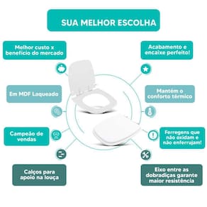 MATERIAL * Fabricado em madeira MDF com Pintura Laqueada na cor Branco * Mantém o conforto térmico do assento sanitário.