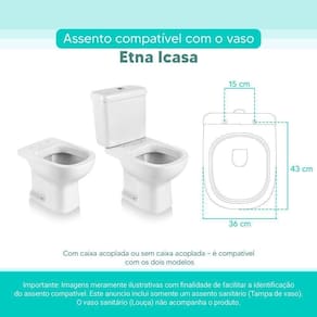 Tampa Vaso Sanitário Madeira Laqueada Etna Branco Para Bacia Icasa A Tampa Vaso Sanitário Madeira Laqueada Etna Branco para bacia Icasa é o que faltava para deixar seu banheiro ainda mais bonito. CAMPEÃO DE VENDAS * Melhor Custo x Benefício do Mercado