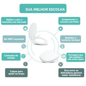 * Acabamento e encaixe perfeito no vaso sanitário.