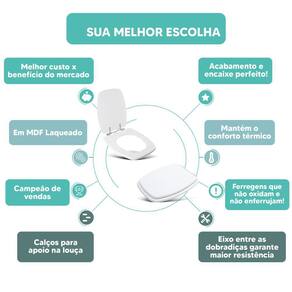 MATERIAL * Fabricado em madeira MDF com Pintura Laqueada na cor Branco * Mantém o conforto térmico do assento sanitário.