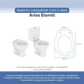 Tampa Vaso Sanitário Poliester Acrilico Aries Branco Para Bacia Eternit A Tampa Vaso Sanitário Poliester Acrilico Aries Branco para bacia Eternit é o que faltava para deixar seu banheiro ainda mais bonito. EXELENTE DURABILIDADE * É totalmente impermeável * Pode ser lavado com água à vontade