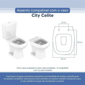 Tampa Vaso Sanitário Poliester Acrilico City Branco Para Bacia Celite A Tampa Vaso Sanitário Poliester Acrilico City Branco para bacia Celite é o que faltava para deixar seu banheiro ainda mais bonito. EXELENTE DURABILIDADE * É totalmente impermeável * Pode ser lavado com água à vontade