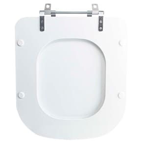 DIFERENCIAL * Possui calços que evitam o contato direto com a louça e que o assento deslize lateralmente. * Proporcionam maior estabilidade durante o uso. * Acabamento e encaixe perfeito no vaso sanitário. * Possui eixo entre as dobradiças, mantendo o assento sanitário firme na louça. * Sua ferragem metálica é super resistente e não oxida e nem enferruja.