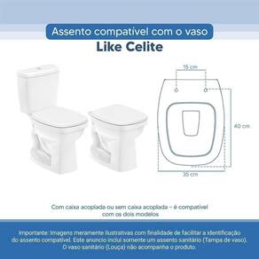 OBS.: O código 6LPF gravado na louça sanitária corresponde ao fluxo de água de uma descarga e não indica o modelo da mesma. RBN: Casa/Banho/Instalações e Acessórios de Banheiro/Vasos Sanitários e Peças/Assento de Vaso Sanitário | Conteúdo da Embalagem: 01 Assento Sanitário | Tipo: Assento Sanitário | Produto: Assento Sanitário | Site do Fabricante: www.ponttolavabo.com.br/ | Marca do Assento Sanitário: Pontto Lavabo | Garantia: 6 meses contra defeitos de fabricação | Dica: Instalação: sem desmontar o produto, posicione sobre o vaso sanitário e encaixe os dois parafusos com as borrachas pretas dentro do furo do vaso. Aperte com a chave de fenda no sentido horário até ficar firme. | Para Vaso Sanitário do Modelo: Like | Para vaso Sanitário da Marca: Celite | Cor: Branco | Tonalidade: Branco | Material do Assento Sanitário: Poliéster | Instruções de Limpeza: Recomenda-se a limpeza com água e sabão neutro, não utilizar produtos abrasivos ou químicos | Almofadado?: Não | Peso do Produto: 2.98 | Tipo de Fechamento: Fechamento Comum | Material da Fixação: Alumínio Anodizado | Precisa de baterias ou pilhas: Não | Regulamentações aplicáveis a produtos perigosos: Não se aplica | Código de certificação: Não se aplica Ean: 7899983692219
