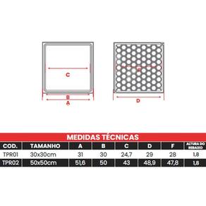 Tampão Simples Com Rebaixo Passagem Inspeção Cinza 50x50cm A tampa tampão de caixa de passagem em alumínio fundido é um componente versátil e utilizado em diversas aplicações, como infraestrutura elétrica, sistemas de esgoto, calçadas, pisos industriais e caixas de gordura, servindo principalmente para proteger, vedar e facilitar o acesso a dutos e passagens subterrâneas ou embutidas. No contexto elétrico, ela protege caixas de passagem contra umidade, poeira e danos mecânicos, além de oferecer blindagem contra interferências eletromagnéticas, sendo ideal para data centers e instalações industriais. Para esgoto e caixas de gordura, a tampa em alumínio garante vedação contra vazamentos, mau cheiro e infestação de pragas, enquanto sua resistência à corrosão a torna adequada para ambientes úmidos ou agressivos. Em calçadas, pisos e áreas de tráfego intenso, como garagens e vias públicas, sua robustez suporta peso e impactos sem deformar, evitando acidentes e garantindo durabilidade mesmo sob condições adversas. O alumínio é preferido por ser leve, resistente, antiferrugem e de baixa manutenção, além de permitir acabamentos (antiderrapante, antiaderente ou com sistemas de abertura rápida). Seja em projetos civis, industriais ou urbanos, essa tampa assegura segurança, organização e fácil acesso para inspeções e manutenções, tornando-se uma solução eficiente para infraestruturas enterradas ou expostas. CAPACIDADE SUPORTADA DAS TAMPAS:ATÉ 500 KG - Veículo EM MOVIMENTO.ATÉ 350 KG - Veículo PARADO. Rebaixo: Sua tampa rebaixada foi projetada para o assentamento da cerâmica (pisos não inclusos) na própria tampa proporcionando um melhor acabamento e harmonia em seu ambiente. Passagem de: Esgoto, água pluvial, cisterna, elétrica, redes de comunicação, gordura e etc. Fácil acesso as válvulas. Características Técnicas:Altura do Rebaixo: 1,8cm.Comprimento: 50cm.Largura: 50cm.Peso: 5,515Kg. Itens Inclusos:01 Tampão Simples Com Rebaixo Passagem Inspeção Cinza 50x50cm. Código: TPR02CSPMProdutoLojaPlast.