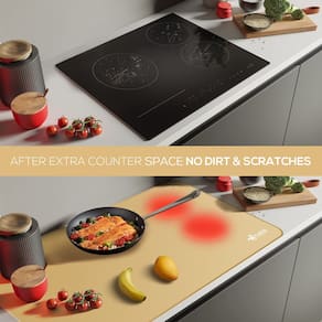Ele pode proteger seu fogão elétrico caro de arranhões e rachaduras, tornando a superfície do seu fogão elétrico mais suave e mais prática. Cada capa de fogão é projetada para ser envolvida com fios precisos, o que não é fácil de usar e durável. É perfeito para fogões elétricos, de cerâmica, de vidro e indução. v Espaço extra na bancada. v Evite que seu gato cause problemas. v Evite que poeira e sujeira grudem nele. Limpe com um pano úmido, pode ser lavado na lava-louças. v Fácil de guardar – enrolado, dobrado. - À prova de fogo e resistente ao calor – FLASLD protetor de vidro para fogão pode resistir ao calor de até 287 °C, pode ser colocado em um fogão desligado, mas ainda quente. pode ser colocado sob a fritadeira de ar, protege efetivamente sua bancada contra danos causados pelo calor! - Protege a parte superior do fogão elétrico – Seu fogão elétrico é valioso. Defenda-o de rachaduras, arranhões, sujeira e sujeira com a tampa essencial do fogão para fogões elétricos e de vidro. - Espaço extra no balcão – Dê uma superfície de trabalho adicional, ótimo para preparar alimentos ou qualquer atividade na cozinha, você precisa de mais espaço no balcão. O revestimento antiderrapante faz com que a tampa do fogão permaneça no lugar ao usá-lo, flexível e fácil de dobrar para armazenamento. - FÁCIL DE USAR E LIMPAR - À prova d'água e resistente à sujeira, limpe a tampa do fogão com um pano úmido ou lave em uma máquina de lavar louça. - Forte e resistente – Tecido de fibra de vidro revestido de silicone natural de alta qualidade, aparência elegante, as capas de fogão estão disponíveis em uma variedade de cores para combinar com qualquer decoração de cozinha, pode ser utilizado como tapete de bancada, tapete de secagem de louça, tampa superior de máquina de lavar. - AVISO - À prova de fogo não significa que pode suportar todo o calor de um fogão de indução, depois de usar o fogão de indução, você precisa esperar que a temperatura caia abaixo de 287 °C e depois cobrir o tapete.