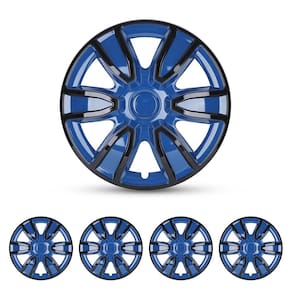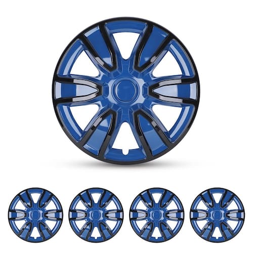 Calotas I1MOTOR de 14", tampa de aro de roda, tampas de cubo universais R14, Snap On Car, caminhonete, SUV, tampas de roda, material ABS e PC, conjunto de laca preta e azul de 4, 14 polegadas
