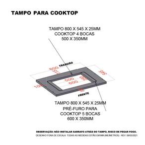 Tampo 80cm com Furo para Cooktop 4 Bocas 50cm X 35cm e Pré Furo Cooktop 5 Bocas 60cm x 35cm Luciane