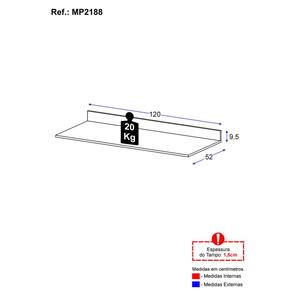 Altura: 9,5cm | Largura: 120cm | Profundidade: 52cm