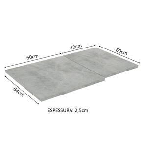 - Um (1) tampo de MDP de 102 cm de largura x 64 cm de profundidade x 2,5 cm de espessura para balcão de canto