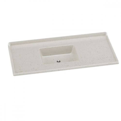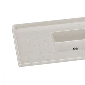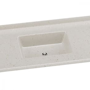 Tampo para Pia de Cozinha Rorato Marmoplan 1,20 m Cuba Central Produto em mármore sintético com espessuras reforçadas, com cobertura granitada de gel coat com brilho e resistência incomparáveis. Superfícies mais lisas sem porosidade proporcionando maior higiene e fácil limpeza. Pias com protetor de parede e caneletas altas, evitando o derramamento acidental de água.