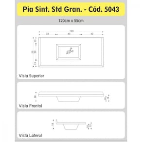 Produto em marmore sintetico com espessuras reforcadas, com cobertura granitada de gel coat com brilho e resistencia incomparaveis. Superficies mais lisas sem porosidade proporcionando maior higiene e facil limpeza. Pias com protetor de parede e caneletas altas, evitando o derramamento acidental de agua.