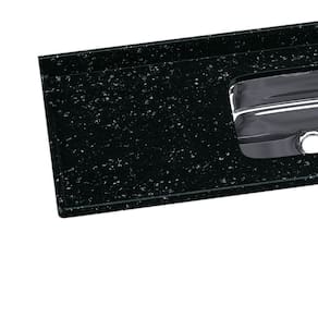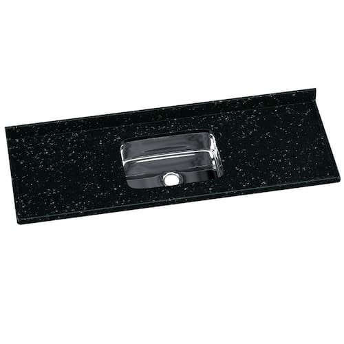 Produto em mármore sintético com espessuras reforçadas, com cobertura granitada de gel coat com brilho e resistência incomparáveis e cuba de aço Inox.