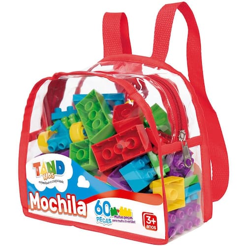 Tand Kids Mochila 60 Peças - Toyster. Uma mochila para a criança levar aonde quiser com 60 blocos de montar de Tand kids para se divertir e estimular as habilidades psicomotoras, criatividade, raciocínio lógico, imaginação da criança e garantir a diversão Certificado pelo INMETRO - CE-BRI/IQB 002320 NM 300/2002 OCP 0006 Idade recomendada 3 anos + Composição/material PVC Quantidade de Peças 60 blocos Conteúdo da Embalagem 1 Mochila com 60 blocos Peso aproximado da embalagem com produto 425g Garantia do Fornecedor Contra defeitos de fabricação Referência do Modelo 001872 Marca: Tand Kids - Toyster Ean: 7896054025976