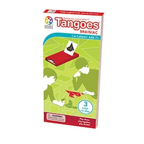 Os jogadores de Tangoes vão adorar a Brainiac Edition, que retoma onde o Classic Tangoes deixa de fora e oferece 54 quebra-cabeças novos e ainda mais desafiadores! Baseado no antigo quebra-cabeça chinês Tangram, os produtos Tangoes são uma ferramenta de aprendizagem que combina elementos artísticos e matemáticos para melhorar a capacidade de percepção visual, desenvolver habilidades de resolução de problemas, capacidade de pensamento criativo e trabalho em equipe. O objetivo dos produtos Tangoes é formar a imagem na carta usando todas as sete peças do quebra-cabeça. O tangram clássico forma um quadrado. As sete peças de Tangoes também podem formar um número infinito de desenhos abstratos, figuras humanas, animais e objetos cotidianos. Horas de jogo alucinante para uma ou duas pessoas. Cada pessoa pode jogar independentemente ou desafiar outra em uma corrida para resolver o quebra-cabeça.