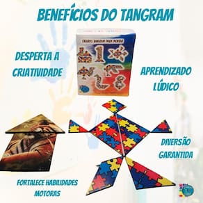 Seja para um passatempo relaxante ou para um desafio mental, o Tangram é a escolha perfeita para quem ama quebra-cabeças. Não perca a chance de adquirir o seu agora e aproveite para explorar todas as possibilidades dessa experiência única! É o jogo ideal para quem deseja sair da rotina, exercitar a mente de forma lúdica e ainda se divertir com figuras fascinantes e desafiadoras.