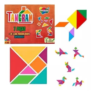 Tangram 7 Peças - Aquarela BrinquedosO Tangram é um quebra-cabeça geométrico chinês formado por 7 peças, chamadas tans: são 2 triângulos grandes, 2 pequenos, 1 médio, 1 quadrado e 1 paralelogramo.Este quebra-cabeça é capas de estimular tanto o lado esquerdo do cérebro, que lida com a lógico, quanto o direito, que é encarregado das informações abstratas.