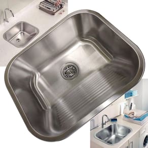 Feito em aço inox 201, com chapa de 0,8 milímetros de espessura é resistente aos agentes químicos. Possui manta emborrachada para diminuir o ruído da água.