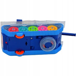 Transparência: A estrutura transparente permite que as crianças vejam as engrenagens coloridas em ação, estimulando o aprendizado sensorial.