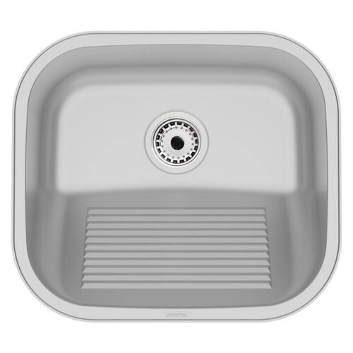 Aço Inox AISI 304. 0,7 mm de espessura. Acabamento acetinado. Acompanha válvula de 3 1/2. Profundidade da cuba 190 mm. Capacidade 19 L. NA Ean: 7894693801159