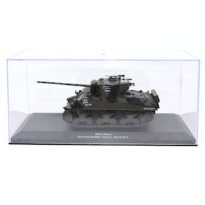 Este modelo de tanque M4A3 (76mm) do 761º Batalhão de Tanques, na Alemanha em março de 1944, é uma réplica fiel do veículo histórico. Fabricado em escala 1:43 pela Diecast Masters, este modelo é feito de metal e plástico de alta qualidade e possui detalhes impressionantes, como canhão de 76 mm, trilhos de blindagem e marcações autênticas. Marca: Não Informado