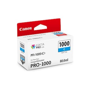 Canon Ink Lucia PRO PFI-1000 Tanque de tinta individual ciano - País de origem: Japão - A altura da embalagem do produto é de 2,54 cm - O comprimento da embalagem do produto é de 2,5 cm - A largura da embalagem do produto é de 2,5 cm