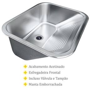 Produzido em aço inox 201, oferece maior resistência aos agentes químicos. Além disso, o produto possui manta emborrachada com o intuito de diminuir o ruído da água na superfície do tanque.