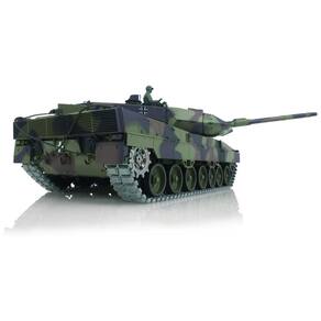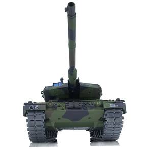 Este tanque militar de brinquedo infravermelho é ideal para jogos com mais de um jogador. O sistema de controle de rádio de 2,4 GHz permite que muitos tanques semelhantes brinquem juntos sem interferência de rádio. Este tanque dispara pelotas BB de 6mm com ação HullRecoil gelado e efeito sonoro de disparo, com um alcance de tiro de 20m. Sua torre gira quase 340 graus e o barril pode ser controlado para cima e para baixo em quase 30 graus. Possui uma caixa de câmbio de aço e suspensão de roda metálica, além de uma placa-mãe 7.0 que oferece dois tipos de som para escolha, com cada ação atuando com som mecânico de tanque real imitado. As luzes de tanque emulacionais de LED são um detalhe interessante. Quando o tanque corre rápido, a fumaça gradualmente aumenta, mas é necessário adicionar líquido no tanque, lembrando de colocar apenas uma gota por vez. É importante observar que não é possível enviar líquido para alguns países.