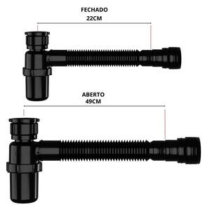 Tanque de plástico 22l para lavanderia preto + sifão copo universal sanfonado + fita veda rosca