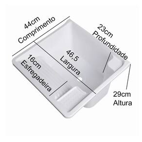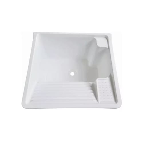 Tanque compacto, mas completo! Nossa cuba de plástico oferece praticidade com capacidade de 26 litros, esfregador frontal, suporte para sabão e base para torneira, inclua sua torneira direto no tanque ou na parede. Adapte-o facilmente ao seu espaço, fixando-o na parede. Prático e funcional!