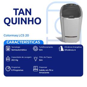 TANQUINHO COLORMAQ ECOMAX 20KG SEMIAUTOMÁTICO TURBILHONAMENTO LCS 20