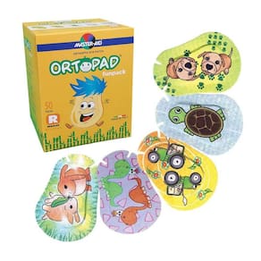 Tapa-olho oclusivo. Tecido macio de bambu. Caixa de 50 unidades. Sem látex. Hipoalergênico. Disponível em três tamanhos: Junior (S), recomendado para crianças de 0 a 2 anos, mede 67X50mm Médio (M), recomendado para crianças de 2 a 4 anos, mede 76X54mm Regular (L), recomendado para crianças de 4 anos ou mais, mede 85X59mm