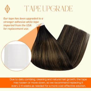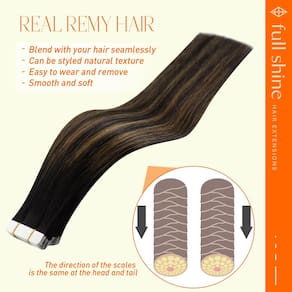 Extensões de cabelo Ombre Balayage Tape in Hair é o símbolo da Full Shine Hair. Se você está cansado da cor pura básica, escolha a cor Ombre Balayage é uma escolha correta, experimente! Detalhes do produto: Material do cabelo: cabelo humano real Textura: Liso e tem uma onda natural quando molhado ou deixado para secar ao ar livre ou difuso. Fita: Fita branca americana Tamanho da fita: 0,8 cm x 4 cm Conjunto: 2,5 g/peça, 20 peças/pacote, 50 g/pacote Aviso antes de fazer o pedido 1. Quantidade necessária: 150-250 gramas, 3-5 pacotes são recomendados para toda a cabeça. Se você tiver cabelo curto, reduza 1 pacote. 2. Sobre o estilo: nossas extensões de cabelo com fita humana são exatamente como o seu próprio cabelo e podem ser modeladas, enroladas ou alisadas conforme desejado. O DIY diário reduzirá a vida útil das fitas, use mais nutrição. 3. Sobre a cor: nossa fita de cabelo pode ser mais escura, mas não mais clara. Sempre teste um pequeno pedaço quando você tingir. 4. Sobre a lavagem: lave seu próprio cabelo sem condicionador quando for a primeira vez para aplicar em . Não lave o cabelo pelo menos 72 horas após a fixação, a lavagem diária não é boa para suas extensões. Use xampu e condicionador sem sulfato no cabelo 5. Cuidados: sugerimos que você use o óleo para reviver o cabelo seco; dormir com uma touca de seda ou compre uma fronha de seda para proteger o cabelo. 6. Sobre o uso: O cabelo pode ser reaproveitado com fita de substituição. Sugerimos ajustar a fita a cada 2-5 semanas para manter o cabelo bem. Encontre beleza e confiança com Full Shine Hair. - Sobre a instalação: o sanduíche é uma boa maneira, as duas peças devem ser alinhadas, não adicione muito cabelo no meio, ou ele cairá; você pode cortar suavemente as fitas uma vez com um alisador de cabelo, não aqueça a fita usando temperaturas excessivamente altas - Aparência natural: extensões de cabelo com fita adesiva podem adicionar estilo e volume ao seu cabelo com resultados naturais e discretos; ao escolher a cor que se adapta ao seu tom de cabelo, você pode desfrutar de cabelos mais cheios sem que ninguém perceba que você está usando extensões de cabelo - Disponível em vários tons: extensões de cabelo humano com fita adesiva oferecem muitos tons diferentes, balayage e ombré e muitas cores puras; você também pode criar sua mistura preferida usando dois ou três tons diferentes para obter um visual natural - Dupla face, invisível e substituível: como eles são muito leves e pegajosos o suficiente, eles se unem bem ao seu cabelo real sem qualquer desconforto. O uso adequado não danificará seu couro cabeludo e não causará nenhum desconforto. Você pode usar um removedor de adesivo ao remover - Como desembaraçar: nunca durma com extensões de cabelo molhado; sempre certifique-se de que o cabelo esteja seco e puxado para cima; use um pente de dentes largos nas pontas do cabelo, alise o cabelo, aplique azeite de oliva. Também pode ser utilizado com spray desembaraçante - Mais opções de penteado: se você quiser experimentar um novo visual, as extensões de cabelo com fita Full Shine podem ajudá-lo a alcançar seus objetivos de cabelo desejados; já que são cabelos humanos reais, que podem ser lavados, fortalecidos e enrolados usando um alisador - Uso recomendado: para cabelos grossos, 1-2 pacotes para aumentar o peso e 3-4 pacotes para aumentar o comprimento; para cabelos finos, 3-4 pacotes para aumentar o peso e 1-2 pacotes para aumentar o comprimento; você só precisará visitar o salão a cada 3 a 6 semanas após as extensões estarem em - Menos manutenção e antes da instalação: ao contrário de outros métodos, as extensões de cabelo com fita adesiva exigem menos manutenção; lave sua fita em extensões e seque com secador, não use condicionador ou óleo antes da instalação; é melhor você ir a um salão para instalar - Após a instalação: não lave a fita adesiva no cabelo em 48 horas, sugerimos que você use um condicionador melhor para cuidados profundos; nunca coloque o condicionador nas raízes do seu cabelo de qualquer maneira; isso pode fazer com que suas extensões de cabelo escorreguem