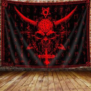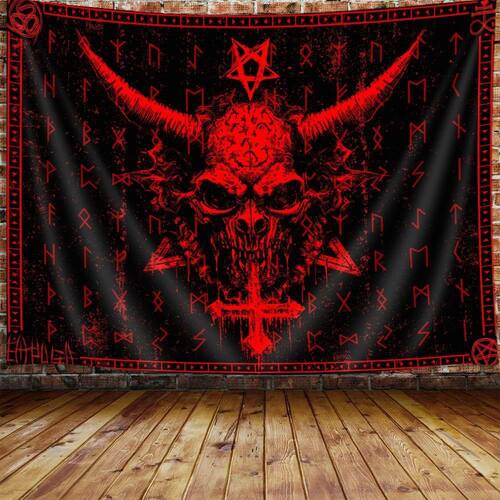 Material: pele de pêssego Tamanho: 150 cm × 130 cm Peso: 260 g Design gótico escuro: apresenta uma caveira com chifres com símbolos de pentagrama e runas, criando uma poderosa obra de arte de parede de inspiração oculta. Tecido de poliéster durável: feito de poliéster leve com impressão digital vívida, garantindo contraste forte em vermelho e preto e durabilidade duradoura. Tapeçaria de parede versátil: perfeita para quarto, sala de estar, dormitório ou estúdio de música, adicionando uma atmosfera gótica dramática a qualquer espaço. Fácil de pendurar e manter: leve e dobrável, simples de pendurar com ganchos ou clipes; lavável à máquina para facilitar o cuidado sem desbotar. Tamanho decorativo grande: mede 150 x 130 cm, oferecendo ampla cobertura como tapeçaria, pano de fundo ou impressionante decoração artística de parede.