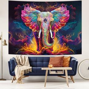 Material: fibra de poliéster (poliéster) Tamanho: 150 cm × 130 cm Peso: 260 g Design vibrante de elefante: apresenta um elefante psicodélico e colorido em um estilo hipnotizante de aquarela, perfeito para adicionar um toque artístico a qualquer ambiente. Material de poliéster premium: feita de tecido de poliéster durável, esta tapeçaria é macia, leve e fácil de limpar para uso duradouro. Ideal para qualquer espaço: perfeito para quartos, salas de estar, dormitórios ou espaços de meditação, adicionando energia e profundidade com suas cores fortes e vibrantes. Tamanho generoso: medindo 59 x 51 polegadas, esta tapeçaria tem o tamanho perfeito para telas de parede em espaços maiores ou menores. Fácil de pendurar: leve e simples de instalar usando ganchos ou pregos, permitindo fácil configuração e transformação de decoração sem esforço.