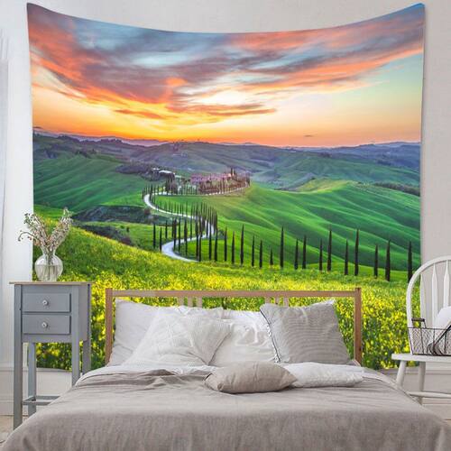 Tapeçaria, paisagem, pastagem verde, microtecido 150x150cm