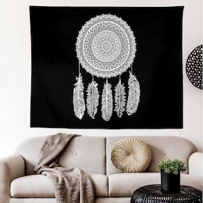Material: pele de pêssego Tamanho: 150 cm × 130 cm Peso: 195g Design exclusivo do Dreamcatcher — apresenta um fundo preto impressionante com uma mandala branca detalhada e um padrão de penas, adicionando um toque boêmio moderno ao seu espaço. Tecido de pele de pêssego de alta qualidade — Feito de material macio e durável de veludo de pele de pêssego, leve, suave e resistente a rugas para uma beleza duradoura. Decoração artística de parede versátil — perfeita para uso como tapeçaria, tapeçaria, pano de fundo, colcha de cama, capa de mesa ou peça de decoração de dormitório, criando uma atmosfera aconchegante e elegante. Tamanho decorativo generoso — mede 150 x 130 cm (59 x 51 polegadas), ideal para grandes coberturas de paredes, aprimorando quartos, salas de estar e dormitórios com um toque artístico. 🧵 Fácil de limpar e manter — Lavável à mão ou à máquina em água fria, as cores permanecem vibrantes após a lavagem, tecido de secagem rápida para cuidados convenientes.