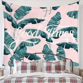 Material: pelúcia curta Tamanho: 150 cm × 130 cm Peso: 290 g Design tropical moderno — apresenta folhas de bananeira verdes ousadas com fundo rosa e tipografia estilosa “Aproveite os bons momentos”, criando uma atmosfera estética moderna. Material de pelúcia macio — Feito de tecido de pelúcia curto, leve e durável, com textura suave e impressão digital vibrante para uma decoração de arte de parede duradoura. Decoração versátil — perfeita para uso como decoração de parede, tapeçaria, colcha, cortina ou pano de fundo para quartos, salas de estar, dormitórios ou estúdios criativos. Fácil de cuidar e pendurar — Bordas reforçadas para maior durabilidade, podem ser penduradas facilmente com clipes, pregos ou ganchos e laváveis à máquina para facilitar a limpeza. Tamanho ideal — Medindo 150 x 130 cm, ideal para cobrir paredes médias a grandes, adicionando um elemento fresco, tropical e motivacional à decoração da sua casa.