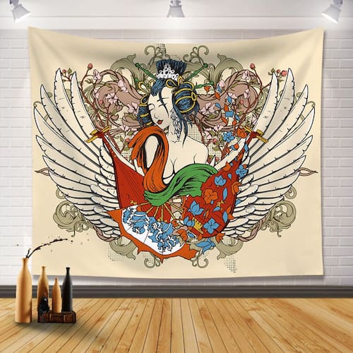 Material: flanela Tamanho: 130 cm × 150 cm Peso: 327 g Design exclusivo de gueixa japonesa — Com uma gueixa tradicional em um quimono vibrante com asas, flores e detalhes artísticos, esta tapeçaria adiciona uma estética oriental ousada a qualquer interior. Tecido de veludo de alta qualidade — Feito de material de veludo macio, oferecendo um toque luxuoso, textura durável e cores vivas que se destacam nas paredes. Tamanho perfeito para decoração — medindo 150 x 130 cm, adequado para pendurar acima de sofás, camas ou mesas, tornando-o ideal para quartos, dormitórios, estúdios ou espaços criativos. Tapeçaria de parede artística versátil — Pode ser usada como tapeçaria, divisória de parede, plano de fundo para fotografia ou toque artístico de ambiente, combinando decoração tradicional e moderna. Fácil de pendurar e manter — Leve, dobrável e lavável, esta decoração artística de parede é conveniente de instalar com ganchos ou clipes e mantém sua cor rica após a lavagem.