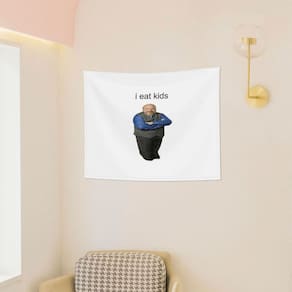 Tamanho: 100 x 150 cm Peso: 110 g Material: poliéster Embalagem: 1 x tapeçaria Esta tapeçaria apresenta o engraçado meme “I Eat Kids” com uma imagem humorística do personagem, perfeita para adicionar um toque peculiar inspirado em memes à decoração do seu quarto, sala de estar ou dormitório. Feita com tecido 100% poliéster, esta tapeçaria é macia, durável e cai lindamente quando pendurada. Seu material de alta qualidade garante cores vibrantes e duradouras e é perfeito para fãs de memes e humor. A impressão em alta definição garante que a imagem e o texto desse popular meme permaneçam nítidos e vívidos, tornando-o uma adição atraente a qualquer parede. É um ótimo começo de conversa para amigos e convidados. Ideal para fãs de humor e memes da Internet, esta tapeçaria é um presente exclusivo para quem adora uma decoração divertida. Com seu design alegre, com certeza trará humor e personalidade a qualquer espaço. Fácil de pendurar com alfinetes ou tachas decorativas, esta tapeçaria é fácil de cuidar. Você pode lavá-lo delicadamente à mão ou a seco e passá-lo a ferro em fogo baixo para mantê-lo fresco e sem rugas.