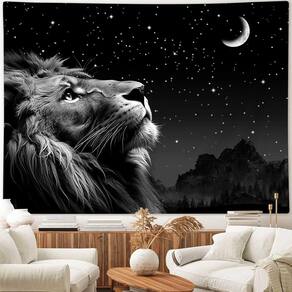 Material: Pele de pêssego Tamanho: 150 cm × 130 cm Peso: 260 g Design majestoso de leão: apresenta um poderoso leão olhando para a lua sob um céu noturno estrelado, simbolizando força e sabedoria em um estilo de arte impressionante. Tecido de pele de pêssego premium: feito de tecido macio, leve e durável, garantindo textura suave, impressão vívida e qualidade duradoura. Decoração artística de parede versátil: tapeçaria perfeita para quartos, salas de estar, dormitórios ou espaços de meditação, aprimorando qualquer interior moderno ou estético. Display de tamanho grande: mede 150 x 130 cm, oferecendo ampla cobertura de parede e criando uma peça central dramática para decoração de casa. Fácil de pendurar e manter: leve e resistente a rugas, simples de pendurar com ganchos ou clipes, lavável à máquina para facilitar o cuidado e a reutilização.