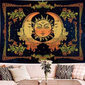 Tapeçaria Tarot Moon Sun Wall Room Estética 150x130cm