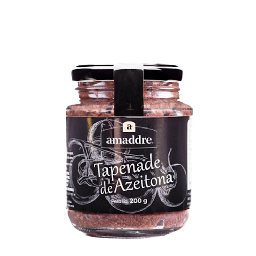 O Tapenade de Azeitona Preta Artesanal Amaddre é uma pasta de azeitonas acompanhada de alcaparras, castanha de caju e alho, além de um toque de vinagre de vinho tinto que traz acidez.